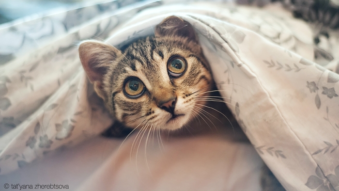 Виноватая. Только собираешься застелить кровать, как Котя тут как тут.. И знает же что мешает, но виноватое выражение лица просто обезоруживает..