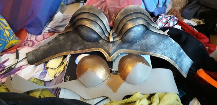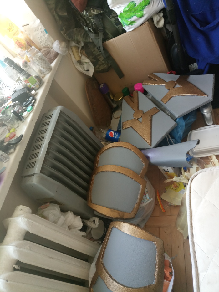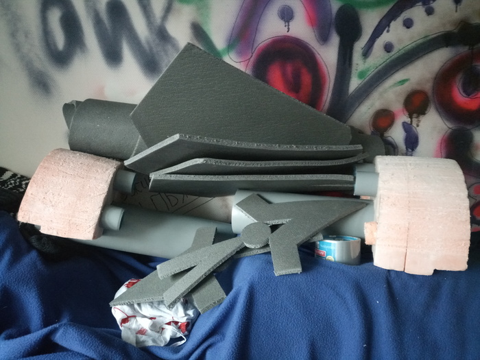 Оооо, этот проект стоил мне стольких нервов... Переделывалась Вай раз десять ибо с такими масштабами работать не приходилось. По факту сделано все это из того самого коричневого и не сладкого и палок, цена косплею гривен семьсот. Если подробнее то материалы - это ПВХ трубы, пенополистерол, изолон и только в конце проекта я познакомилась с прекраснейшим материалом EVA Foam. Плотностью всего в 30 шор (чего было мало).