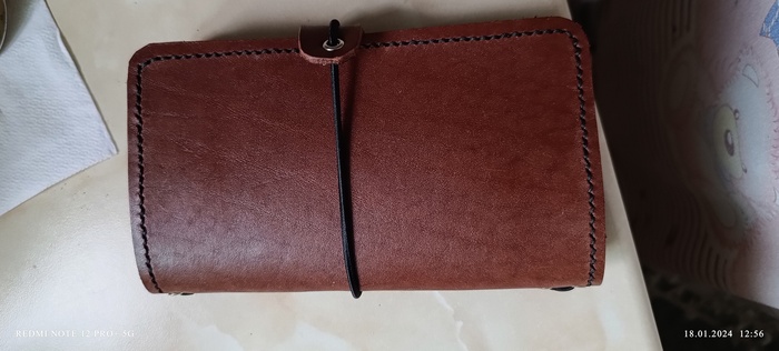 Еще блеск и фактура данной кожи при прошивании , конечно, сильно добавляли проблем - проколов от пробойника совсем не видно