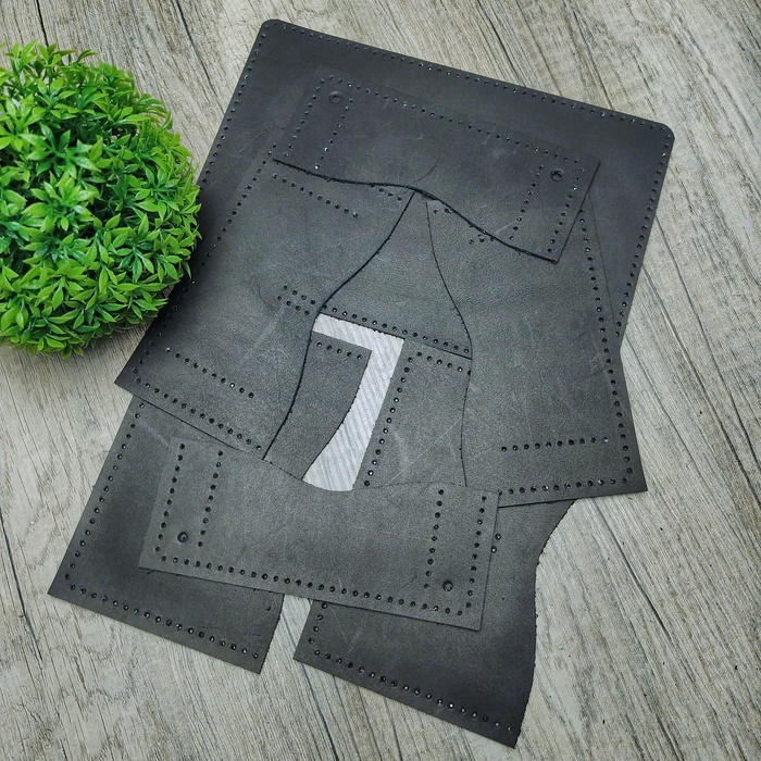 Из фурнитуры: 2 пряжки, 4 хольнитена(заклепки), 2 магнита. Все остальное кожа и нитки.