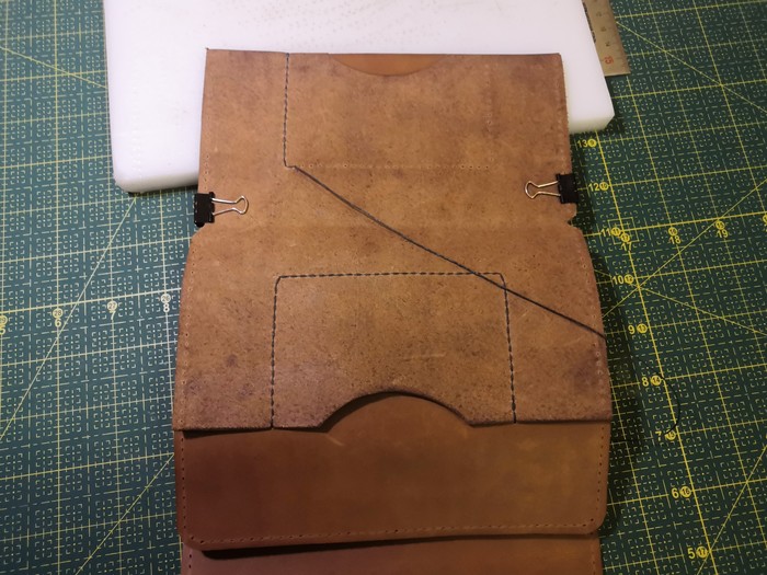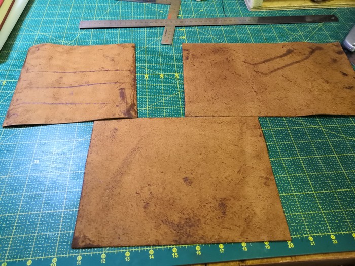 Дальше, подрезаем их до необходимой длинны и закругляем края. С закруглением у меня были сложности, т.к. обрезки были с полы, и кожа была рыхлая и тянулась, даже свежее лезвие Olfa не помогло. Но да и фиг бы с ним)))