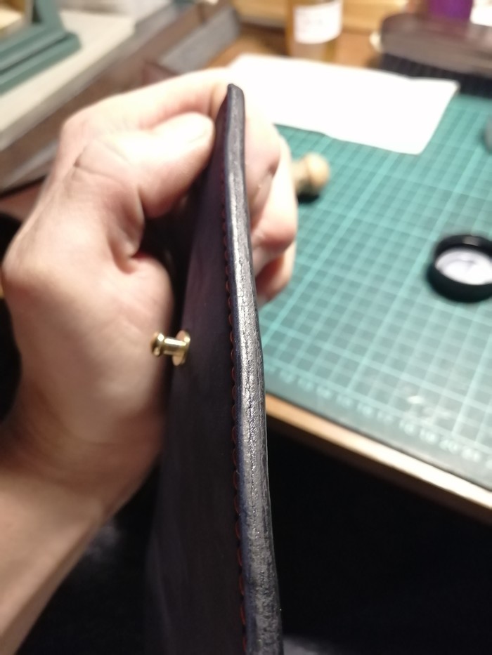 Для обработки бахтармы (изнанки) и урезов применял Токонол нейтральный, то есть бесцветный.