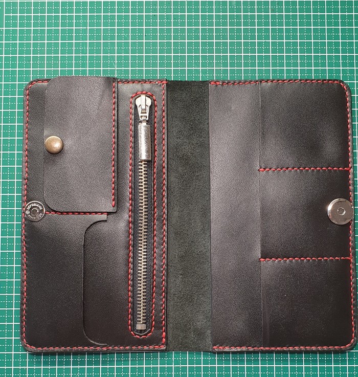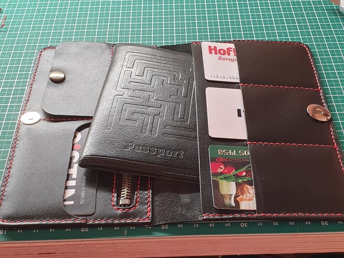 На днях закончил изготовление кошелька, модель получилась довольно большая и вместительная внутри помещается даже пасспорт, есть отдел для мелочи и небольшой карман с клапаном в который можно поместить карту или какую нибудь мелочевку вроде карт памяти. Так же будет рабочий набросок с размерами если желает повторить.