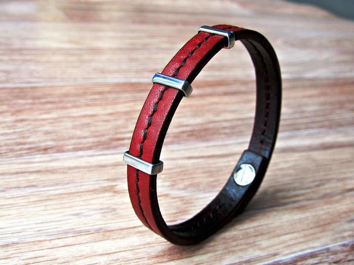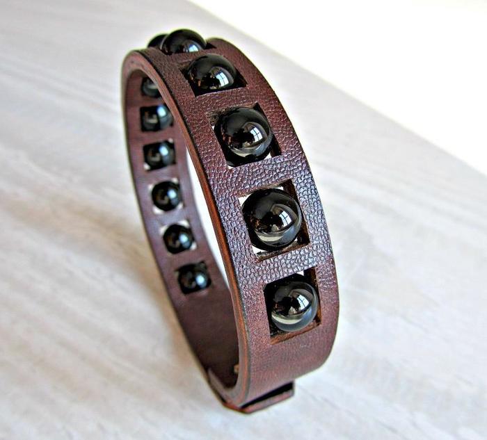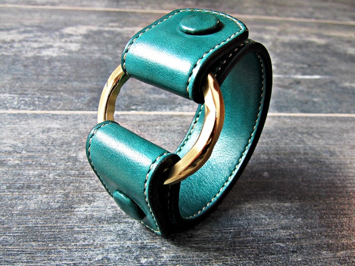 Браслет сделан из плотной ременной седельной кожи(Бычья), метал – инструментальная нержавейка (с оборонного предприятия) Логотип и протектор – лазерная гравировка.