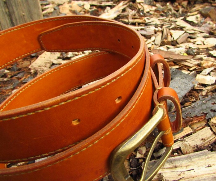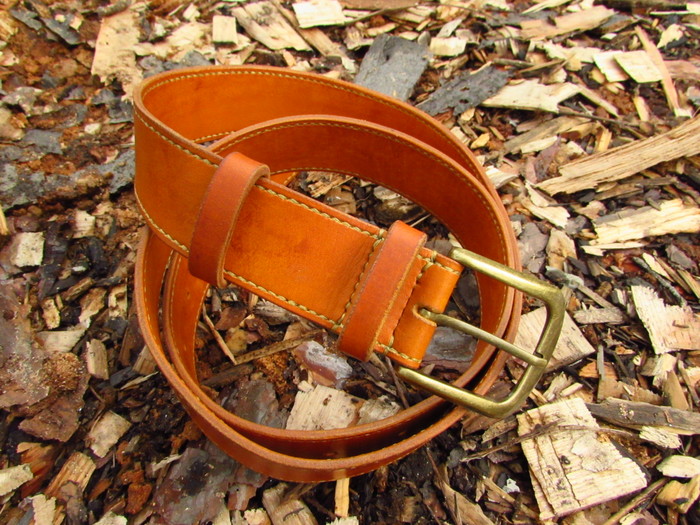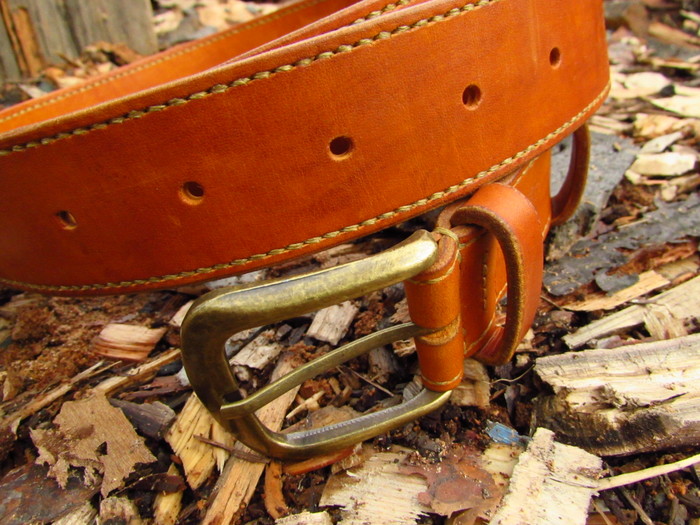 пс: чуть не забыл) Длинна пояса 140см до края пряжки, ширина - 38мм, толщина - 3,4мм. Рыжий вощёный двухслойный краст, нитка - плоский псевдовощеный китаец. Пряжка - китайская штамповка "под золото".