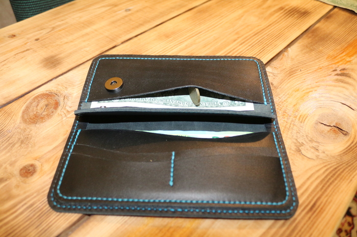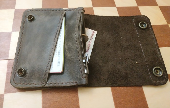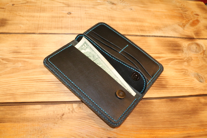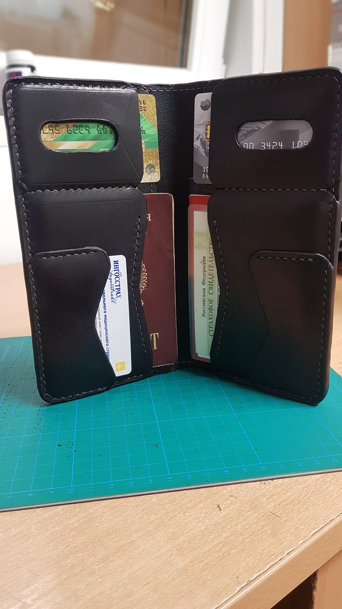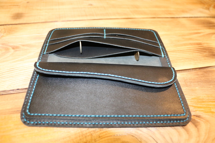 Сегодня не буду показывать процесс изготовления изделия. Появился заказ на простой кошелек с одним отделом под купюры и шестью отделами для карт.
