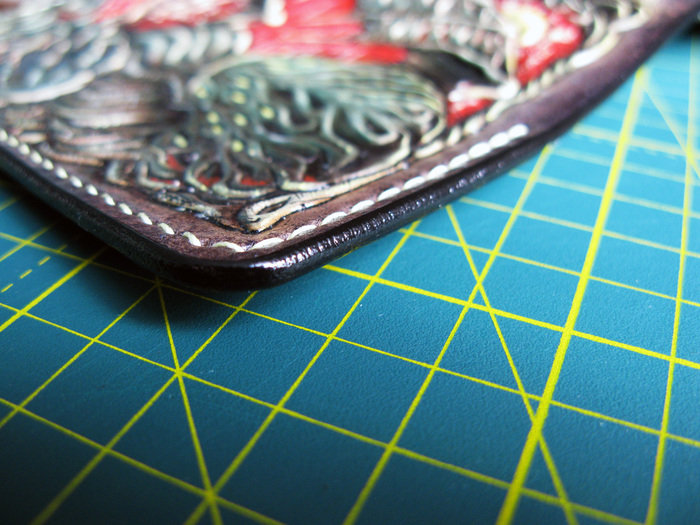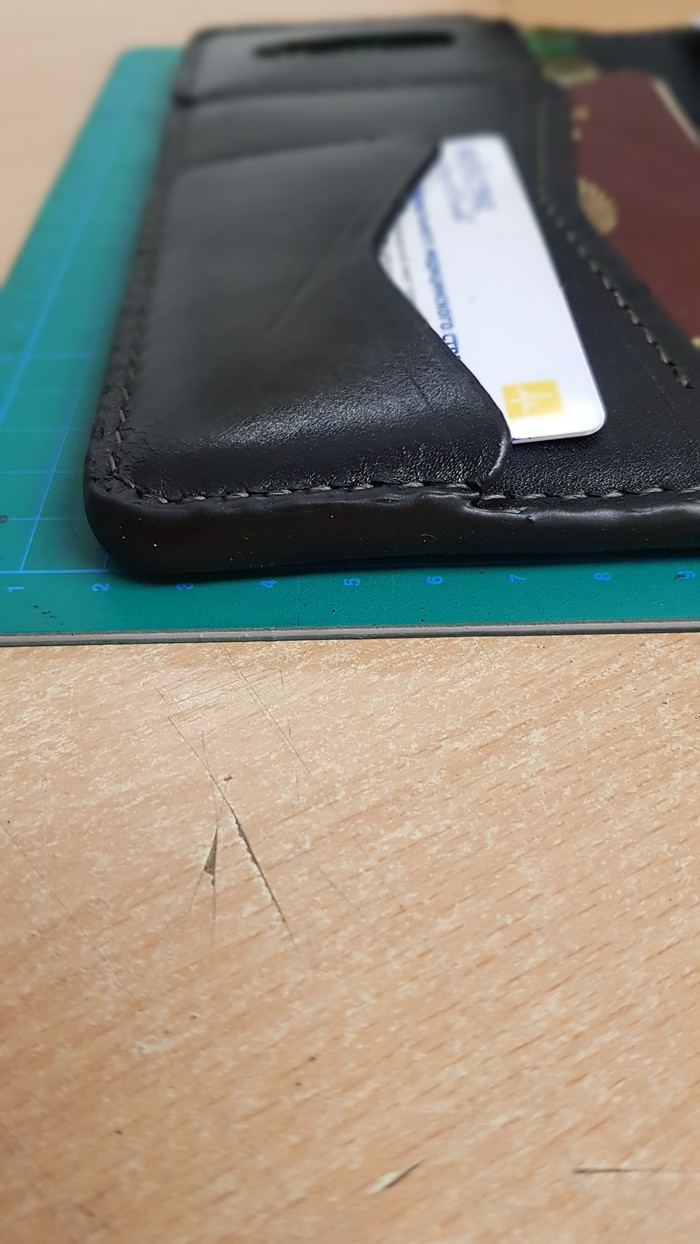 Над урезами в этот рас особо не колдовал. 3 раза прокрасил кендой (а может и два). Не в этом была цель. Думаю кто занимаются кожей скажут, что хороший уреза это по дня работы, даже на таком изделии как кошелек. Поэтому за урез не пинайте больно, но немного можно)))