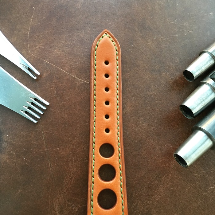 5. Строчные пробойники. У меня их было три комплекта. Первые чёрные (а-ля Япония или из называют японскими) - ошибка, толстый пробой, дырки такие, что палец пролезет. Рвали кожу. Вторые тоже не ахти, но первые пол года работал ими. Шаг на них называется французский. Мне нравится этот шаг. Но очень лёгкие и маленькие. Сам след пробоя хороший. И последние разумные за свои деньги я советую от Вуты. Сейчас вышла вторая версия уже. Важно понимать шаг пробоя! Они бывают: от 2,7 и до 5 вроде. Меня интересовали 3,85 и 3.0. Шаг стоит выбирать в зависимости от толщины нити. Мои ходовые толщины 0,45 и 0,4. Раньше были 0,8, но это я считаю слишком толсто теперь.