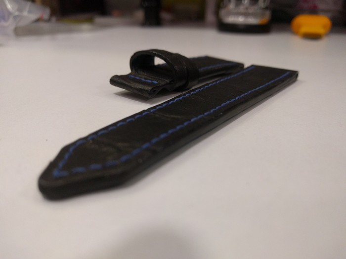 Затем достал поворотный нож, который загодя поправил на сырой нулевке. Многие удивляются постоянной заточке и доводке всяких ножиков-режиков, но на деле кожа садит заточку очень быстро, я как нибудь сфотографирую режущую кромку с ровным блеском до реза и кромку с заметными местами подтупливания по углам после небольшого рисунка. На рисунке кстати и эскиз немного виден и затупленное шило. Так что вроде как и показал я их.