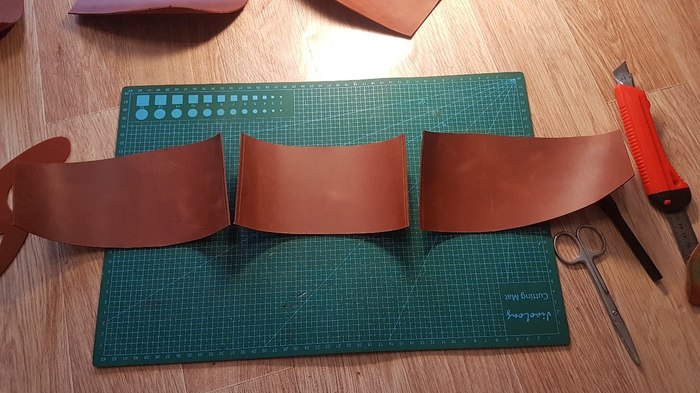 Внутри будет кармашек. (полоски по контуру это следы от токоноле. В комментрариях прошу дать совет как не напачкать лицевую сторону? В моем случае это не страшно- все равно я буду покрывать кожу воском. А вот когда нужно оставить девственно-чистую лицевую часть как быть...)
