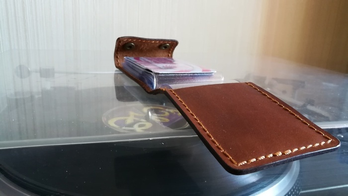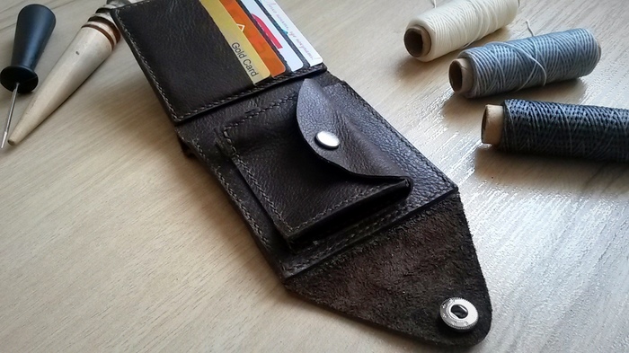 Изначально было что-то типа портмоне, но в итоге в данное изделие влезли все документы и не часто используемые карточки. Топороно, громоздко, местами не правильно, но мне нравится))