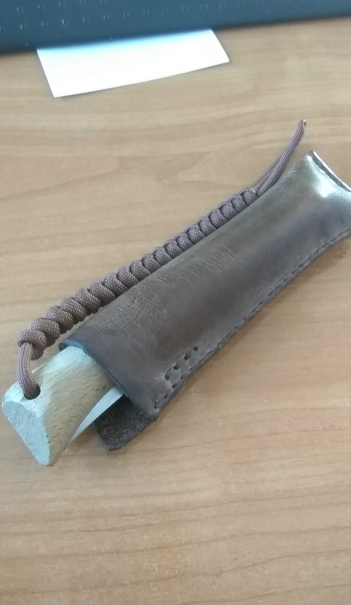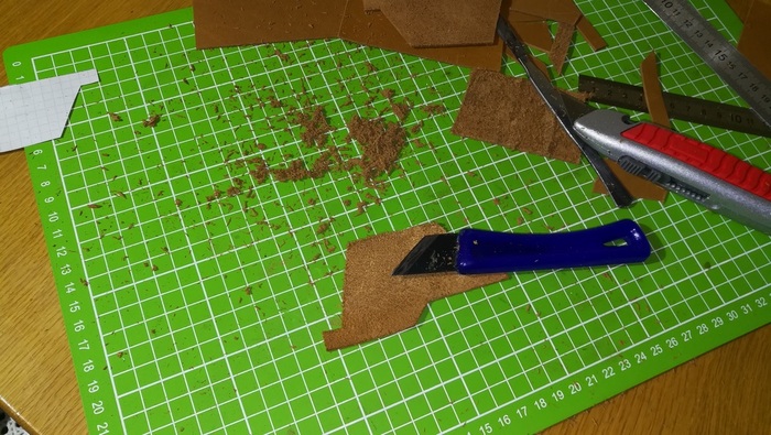 Немного лучше, но нет, да и кожа слишком мягкая, следующее изделие после выкройки обработал раствором клея ПВА с водой, для придания жесткости и сделал вот такую штуку