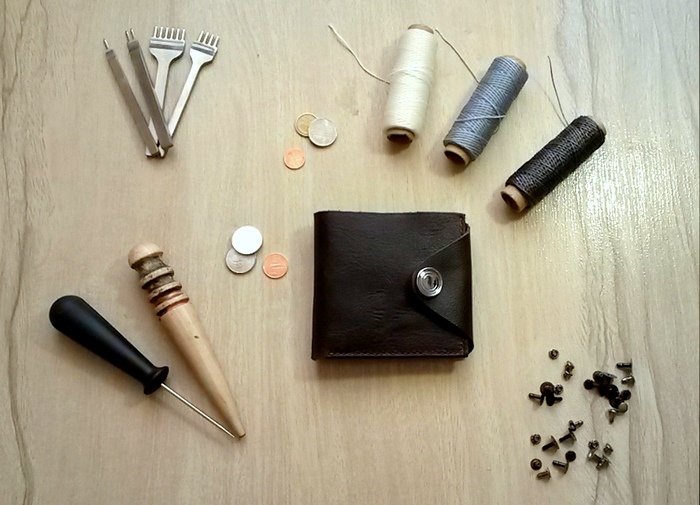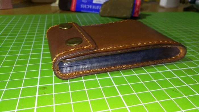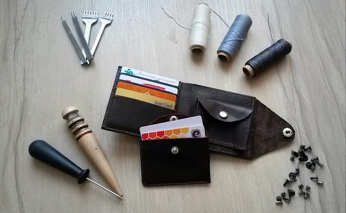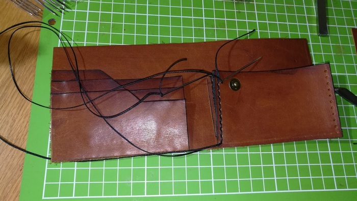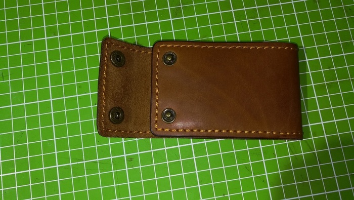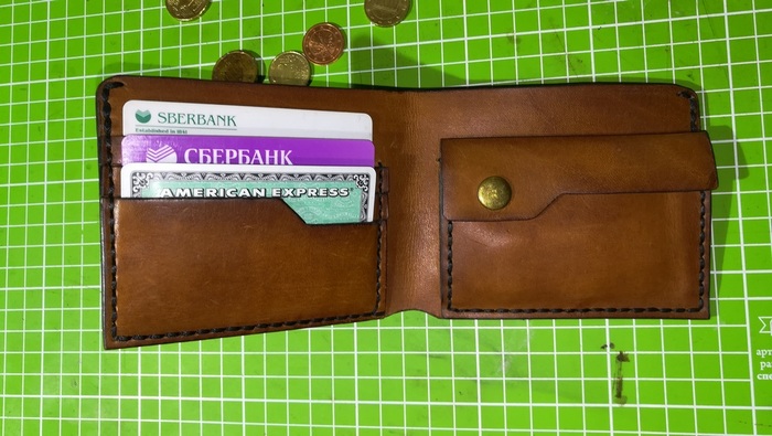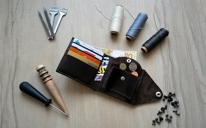 так же выкинул клей момент и взял наиритовый, и это реально крутой клей! Взял на пробу более тонкую кожу и начал пробовать, сразу сделал мини-кошелек: