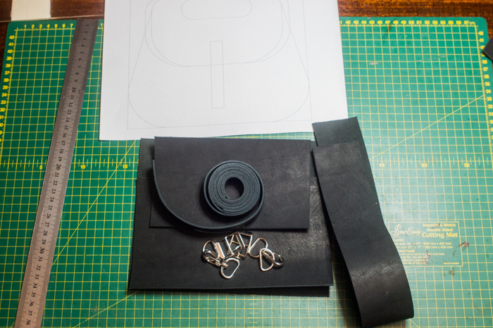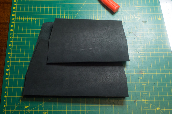 Теоретически подготовленный (как я думал) приступил к простейшему кошельку-лопантнику. Взял в местном магазинчике толстую, но чертовски привлекательную юфть, собрал необходимые инструменты и понеслось.