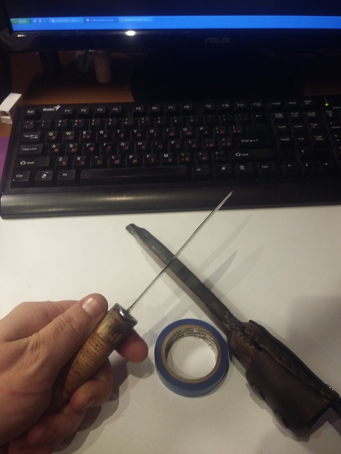 - на кончике ножен не нужно было делать второй люверс (вода не стекает), хотя задумывалось для практичной носки на ноге,