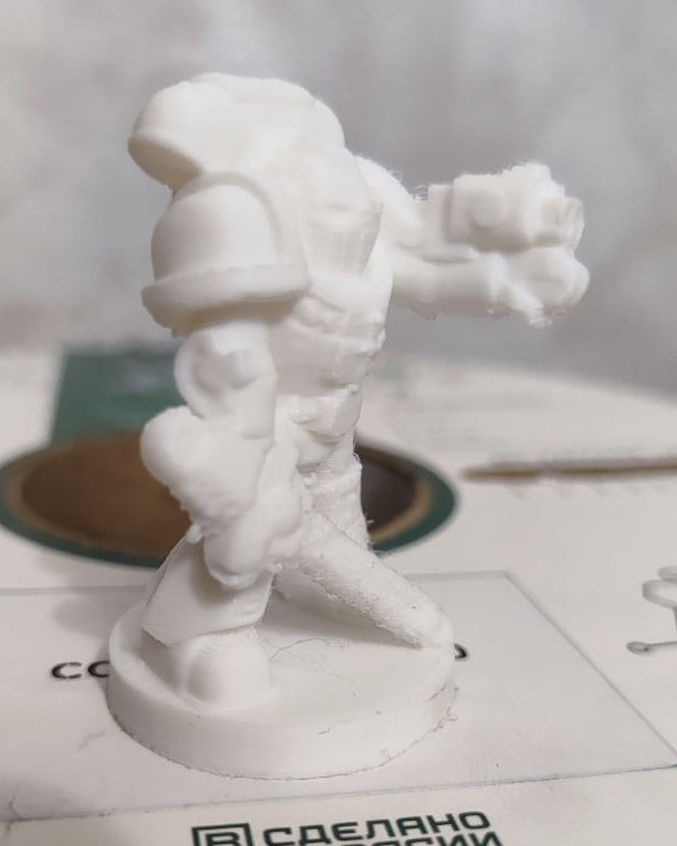 Пара рыцарей из Petg. Настройки оставил те же, только поменял температуру под пластик, как на бобине написал производитель. У 1 десантника оторвалась поддержка руки, и вся рука поплыла, снизу особенно заметно. Второй получился более приятый парень во всех отношениях. Механической обработке этот пластик гораздо хуже чем пла. Ну в целом про petg везде и сказано, что устойчивость просто мое почтение. Фигурки с постобработкой все же буду пробовать на пла.