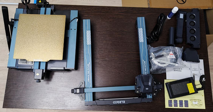 Процесс сборки достаточно простой, что то вкрутить не туда практически невозможно. Более того, на флешке есть видео, где подробно разжевано что куда крутить, а что куда подключать. Все соединения типа мама-папа разных размеров, так что не ошибешься. Также на флешке лежит файлик инструкции, несколько моделей для печати и модификация слайсера от ELEGOO.