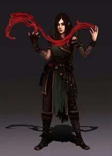 «...на первом фото внешний концепт, поза и одежда со второго, на третьем фото желательный эффект заклинания, что то типа кровавой волны. В добавок нужна повязка на глазах, персонаж слепой »