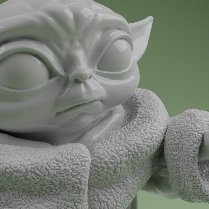 Часто вижу этого мелкого на подставке с английским текстом. Перевел в соответствии с каноном + шрифт starwars , хотя это мало заметно, к сожалению.