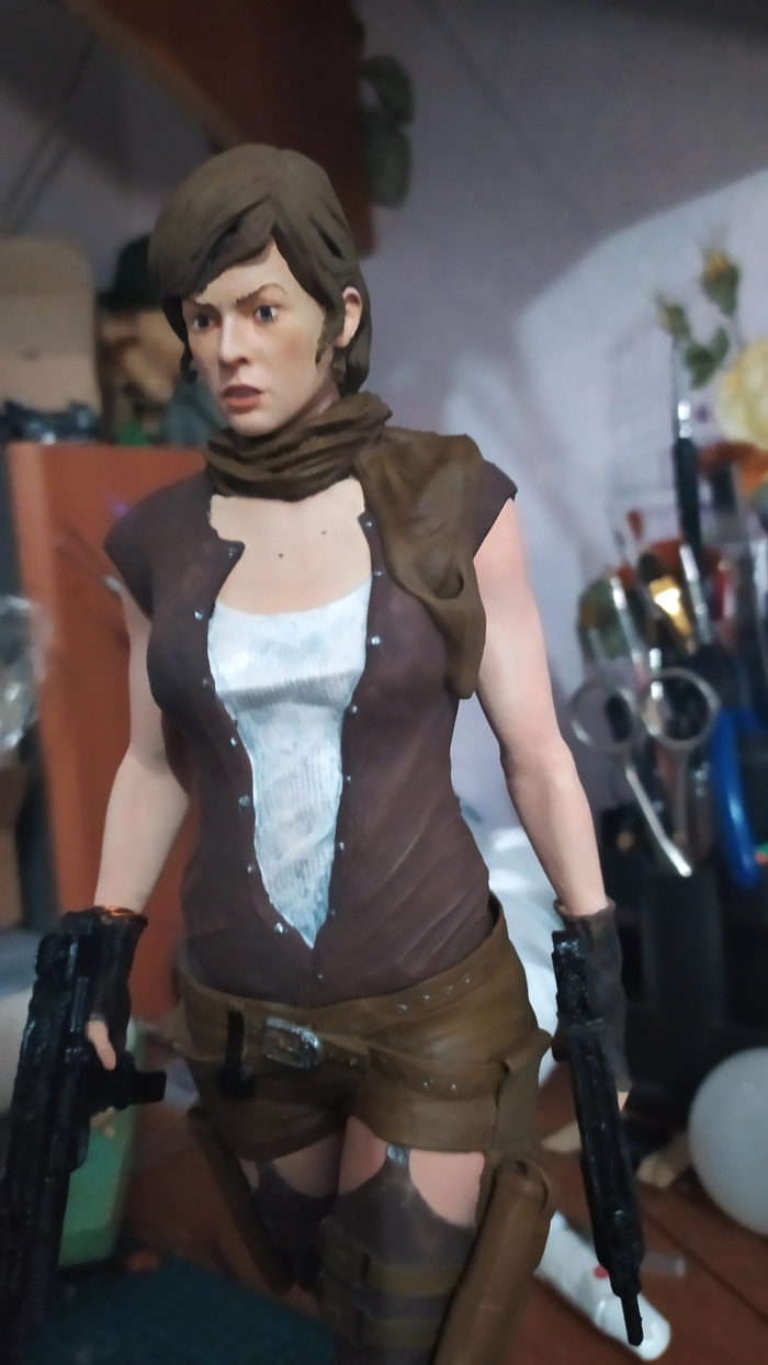 На этой модели как раз тренировалась красить аэрографом, даже тени или отсветы на дереве. Но проливку все таки делала кистью, что на древке удочки, что на камнях, считаю, что для первого раза - очень мило. Отсветы и темные части на веревке получились именно за счет аэрографа, чему я удивлена.
