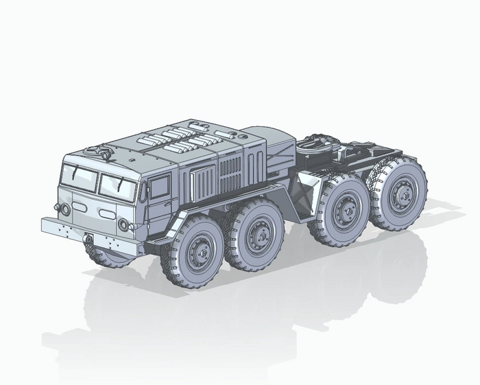 Некоторое время назад поступила просьба разработать модель седельного тягача МАЗ-537 для печати миниатюры. С учетом свободного после основной работы времени в течение пары недель был получен следующий результат: