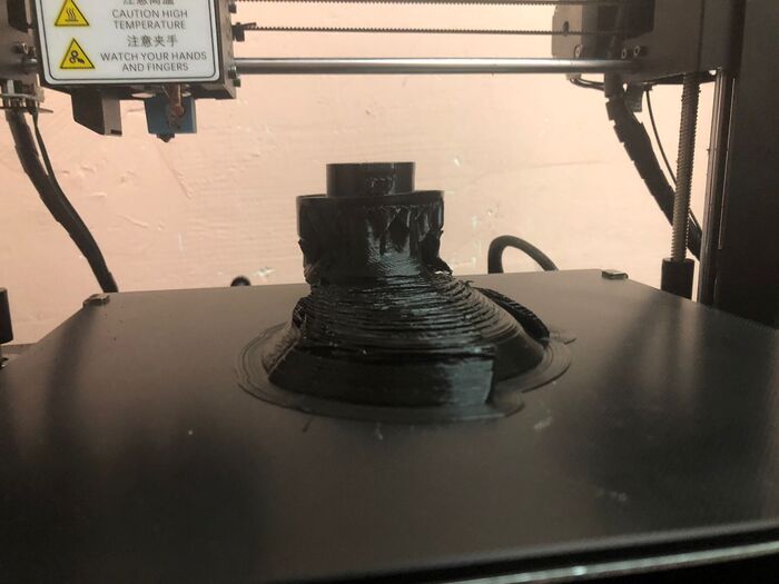 Собрав сего товарища, отрегулировав ось Z, вставив филамент и убедившись что всё работает как надо приступил к печати первой своей детали. Первым решил напечатать конечно же ч̶л̶е̶н̶ фильтр филамента, всё получилось, сразу установил.