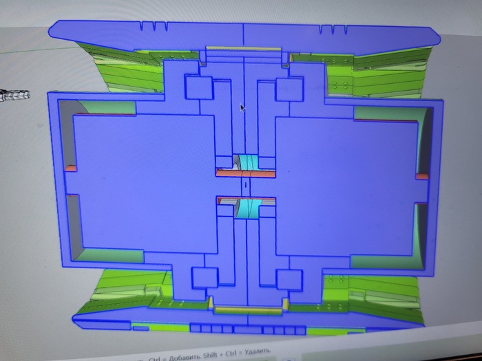 Пытался сэкономить -разместил деталь в детали, как итог - одна опора пробила фонарь над сиденьем. Хотя какая разница? Всё равно модель отклеилась из-за слабой экспозиции первых слоёв — новый пластик подвёл. Пришлось экстренно останавливать печать.