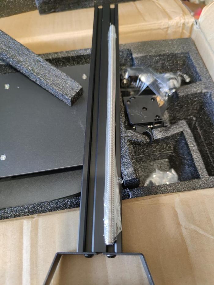 Винт оси z отдельно упакован в пленку. Я думал из за того, что он смазан, но нет. Придется промазывать, он сухой.