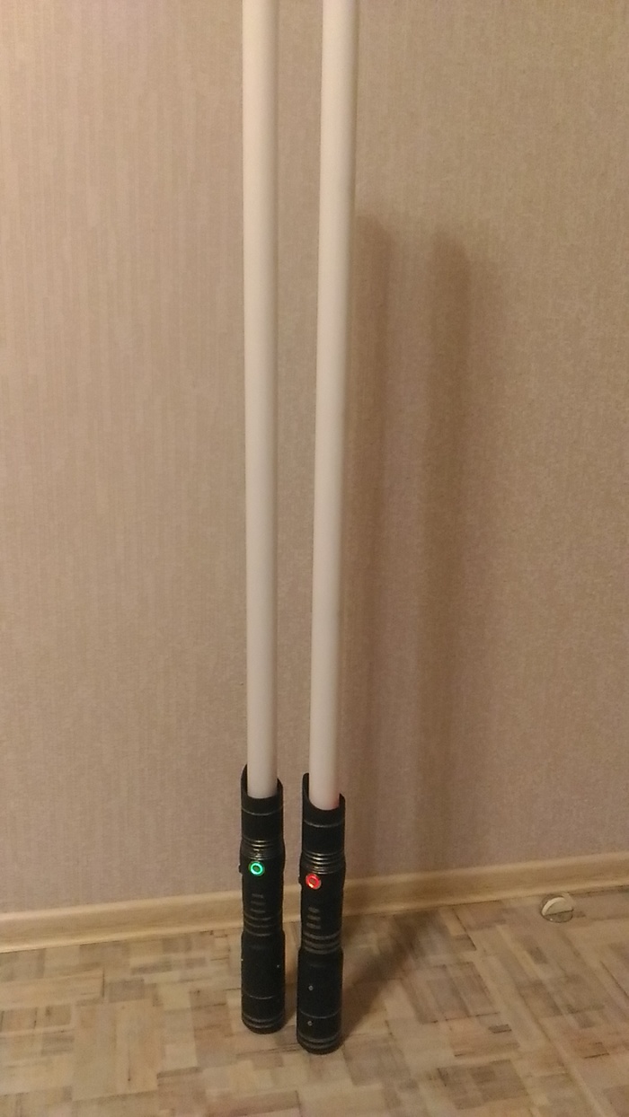 Делал я изначально два меча - непосредственно фанату SW, второй его другу. Красивые металлические кнопки и "фурнитуру" тоже заказывал под два меча. Но так как труба была трёх метровая - и оставалась труба - был собран третий меч, в подарок сестре. Трубу я не нашёл ни в своём Благовещенске, ни в соседних Белогорске, Хабаровске, даже во Владисвостоке, хотя и обзвонил все профильные компании. На Тао нашёл, но там по одной трубе не подорвали, пришлось заказывать с Москвы, ещё и самолётом :) Потому что надо было срочно делать и отправлять в Питер (уж простит меня Пётр, за фривольность).