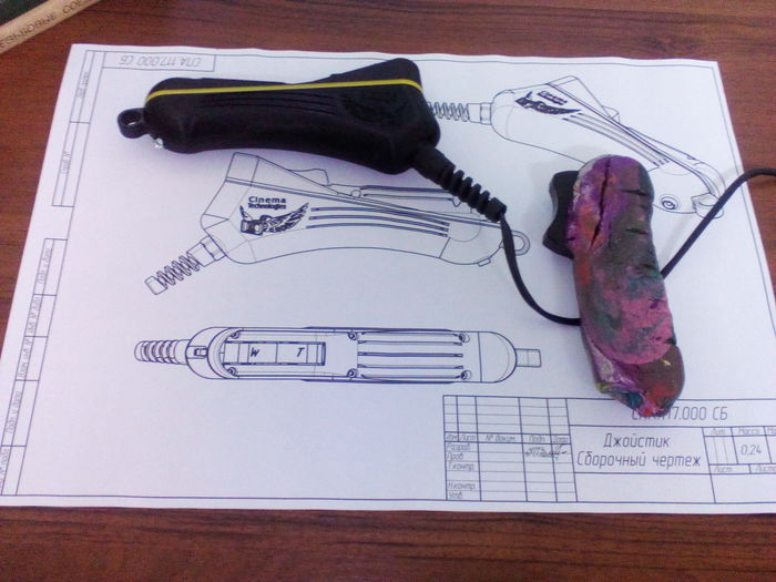 После создания трехмерной модели корпуса пульта, модель была изготовлена методом 3D печати — на картинке представлена модель лепки из пластилина и окончательный образец изделия.