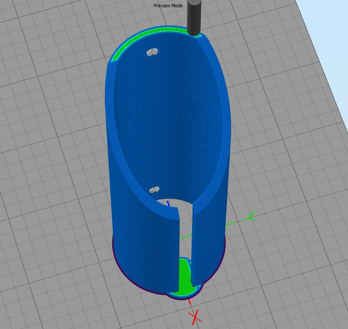 Я сделал кастомные подпорки в Meshmxer. А если точней, он для меня их сгенерил. И прога посчитала, что панельку сзади нужно слегка подпереть. Так что подпорку стоило просто либо отодвинуть подальше от модели, либо убрать вообще, ибо при габаритах итоговой модели особого влияния она бы не оказала.