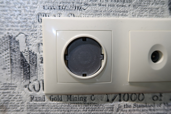 5) Заглушка для розетки. Для тех у кого маленькие дети. Так же можно закрыть неиспользуемые гнезда удлинителя, чтобы не пылились. Печаталась в режиме вазы, поэтому внутри пустая, а стенка в одну линию.