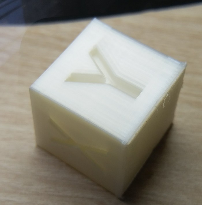 Как только первый слой пластика стал ложиться как надо - напечатал тестовый кубик.
