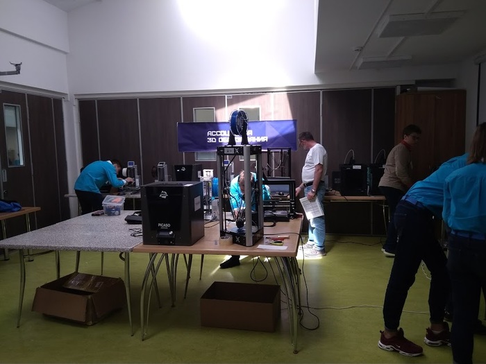- Как я и говорил, принтеры выходили из строя. И если приехал ваш куратор, с которым вы победили в региональном этапе, то можно будет и нарушить правила, создавая новые GCODE и печатая на чужих принтерах. Чаще всего ломались PICASO и NEO, но так как их было большинство, то некоторым даже новый GCODE делать не надо.
