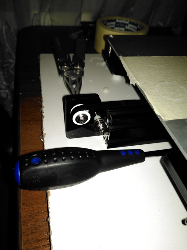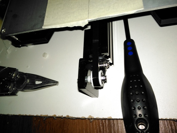 Гоняем до тех пор, пока не будет прижимать лист бумаги. Сила прижима регулируется винтом, который нажимает на концевик. Выкручиваем или закручиваем по чуть-чуть.