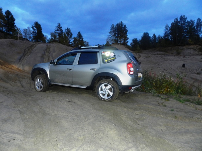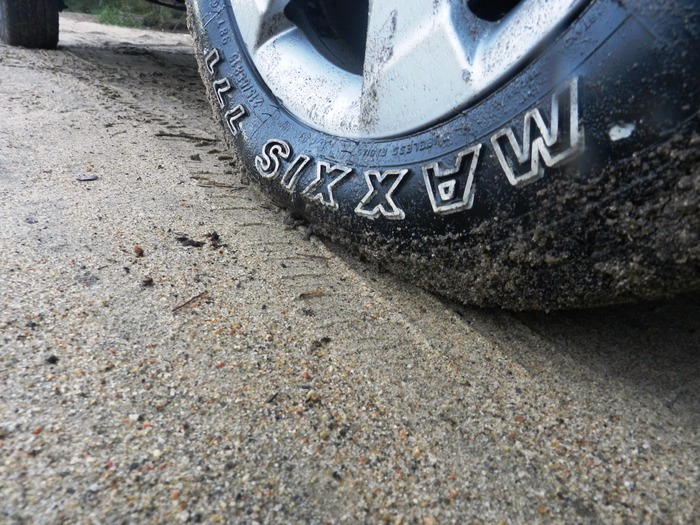 Сразу поехал в карьер на Комсомольской горке, там есть дорожка, где колеи и грязь, я там всегда на полном, так как АТ резина плавает там и наравится подвиснуть. На новых максисах я там прошел на переднем приводе, и только в одном месте пришлось поддать газку. Из колеи выходит, правда не с первого раза. Но я думаю надо сначала сделать давление 1.7., а лучше стравиться до 1атм. и затестить ее в деле.