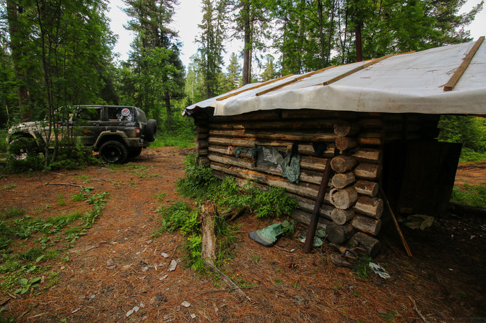 Ремонт не занял много времени, и мы отправились дальше. Солнце стремится за горизонт, а мы стремимся на перевал Дятлова. По пути нас ждет еще одна местная достопримечательность, избушка в кедровнике.