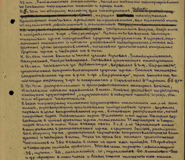Здравствуйте Уважаемые читатели! К концу января 1943 года немцы в ходе операции "Кольцо" были отброшены к Сталинграду и разбиты на два очага сопротивления, после чего Южная группа войск 31 января капитулирует во главе с Паулюсом, а вот северная продолжает сопротивление, выполняя приказ Берлина стоять до конца. Поэтому в ночь на 2 февраля 1943 подразделениям 284-й сд предстояло нанести врагу решающий удар. Штурмовые группы заняли позиции в районе улиц Луговая и Мелитопольская, в бою их поддерживали расчеты пулемётов, орудий 45 мм и миномёты. И в 6:30, когда всё было готово, наши бойцы и командиры, после артподготовки перешли в наступление. Не смотря на то, что противник был измотан, он все равно оказал ожесточённое сопротивление, однако не смог остановить наши подразделения, устремившиеся вперед, атаку так же поддержали танки.