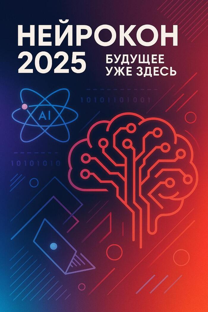 Создай афишу для конференции "НейроКон 2025". Стиль — динамичный, с элементами киберпанка и современного минимализма. На афише добавь крупный заголовок: "НейроКон 2025: Будущее уже здесь", а также абстрактные графические элементы, символизирующие искусственный интеллект.