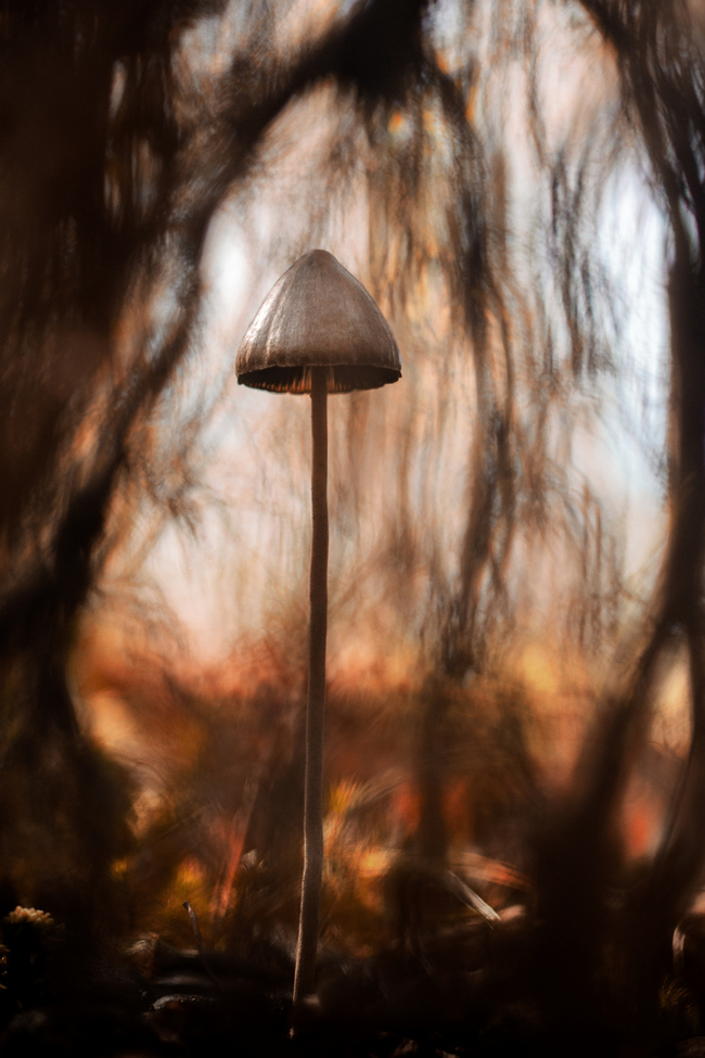 Мох в контровом закатном свете (кадр повёрнут на 90):