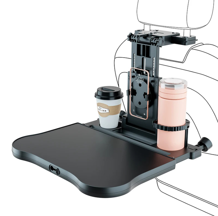 Универсальный автомобильный столик крепится к спинке переднего сиденья и поворачивается на 360°, превращая авто в удобное рабочее или обеденное место. Оснащён подстаканником и антискользящей поверхностью. Подходит как для пассажиров на заднем ряду, так и для водителя в стоящем авто. Идеален для путешествий, перекусов, работы на ноутбуке или занятий с ребёнком.