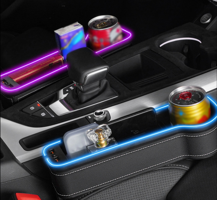 Функциональный органайзер устанавливается между сиденьем и центральной консолью, увеличивая полезное пространство в салоне. Оснащён двумя USB-портами для зарядки гаджетов и светодиодной подсветкой с мягким свечением. Внутри — отделения для банковских карт, ключей, монет и небольших аксессуаров.