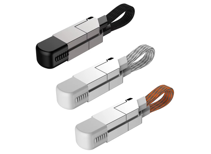 Компактный кабель-брелок совмещает в себе четыре разъёма для зарядки: USB A, USB C и Lightning. Идеально подходит для путешествий и поездок — всегда под рукой. Поддерживает быструю зарядку до 60 Вт. Магнитная конструкция удобно складывается в мини-брелок.