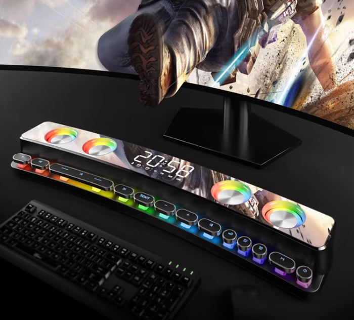 Настольные динамики созданы специально для геймеров — с насыщенным звуком и стильной RGB-подсветкой. Подключение по Bluetooth или AUX позволяет использовать их с ПК, консолями или смартфонами. Компактный корпус отлично впишется в геймерский сетап. Звук объёмный, с выразительными басами.