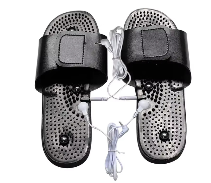 Тапочки с точечными выступами активизируют рефлексогенные зоны стоп при каждом шаге. Изготовлены из прочной и дышащей ЭВА-пены, имеют застежки для регулировки. Подходят для использования с массажёрами или Tens-аппаратами. Способствуют расслаблению и улучшению кровообращения.