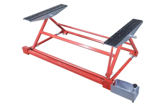 Небольшой, но мощный подъёмник для автосервиса или гаража, обеспечивающий безопасное поднятие автомобилей. Гидравлический механизм позволяет легко управлять подъемом и опусканием, а прочная конструкция гарантирует надёжность в эксплуатации. Незаменим при ремонте и замене колёс.