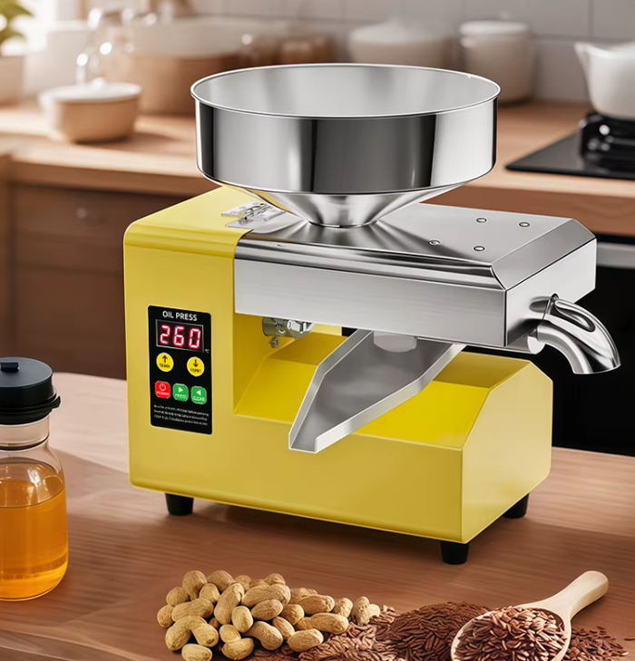 Интеллектуальный пресс для холодного масла создан для получения натурального масла из кокоса, арахиса и других семян. Прочная сталь, которая не подвергается коррозии, гарантирует долгий срок службы, а автоматический режим работы делает процесс максимально простым. Устройство обеспечивает высокую степень экстракции масла благодаря продуманной конструкции и давлению. Благодаря небольшим габаритам его можно использовать даже на небольшой кухне.