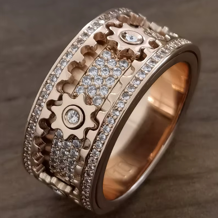 Необычное украшение с поворотным механизмом, который добавляет интерактивности и эстетики. Кольцо выполнено в минималистичном дизайне с акцентом на плавные линии и качественную отделку. Отлично сочетается с повседневным и вечерним образом. Подходит как стильный аксессуар и как антистресс-элемент.