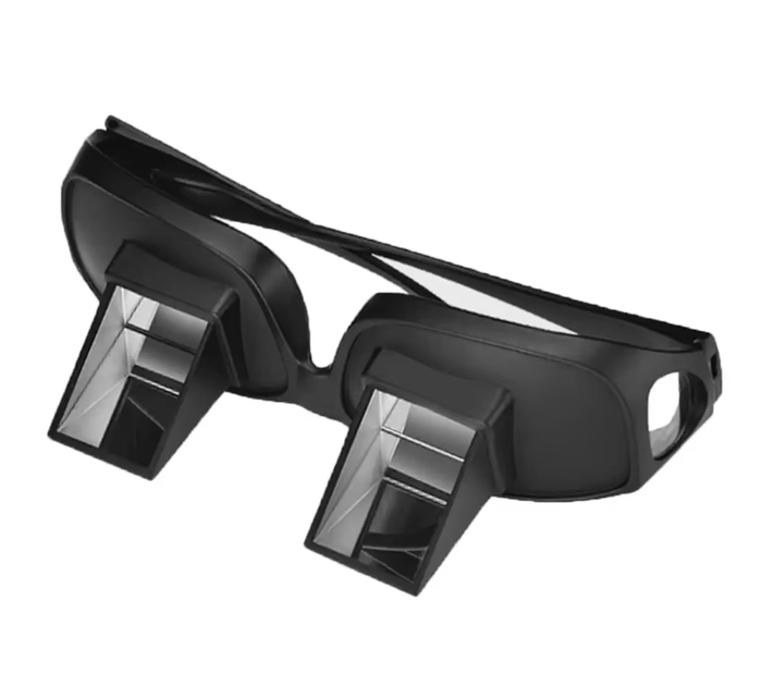 Уникальные очки, которые позволяют читать или смотреть телевизор, лежа на спине. Призма под углом 90° меняет направление взгляда, снижая нагрузку на шею. Прочные стеклянные линзы обеспечивают четкое изображение. Подходят для отдыха и восстановления после операций.