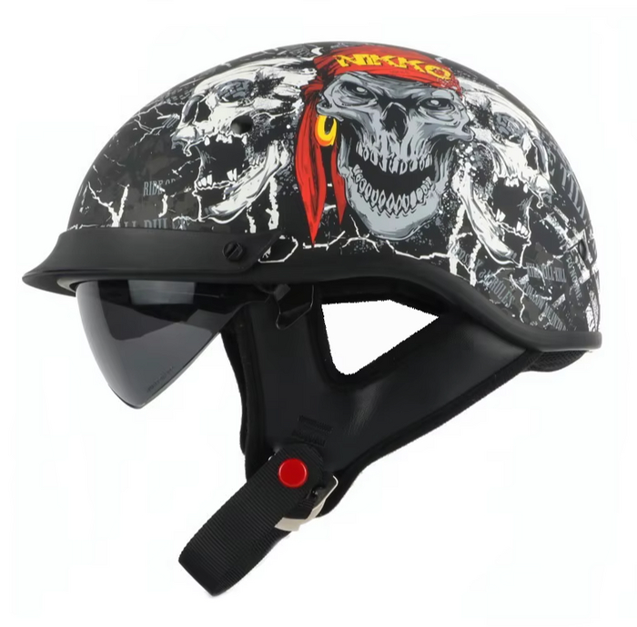 Винтажный шлем для шоссейных и горных мотоциклов с сертификацией DOT. Обеспечивает высокий уровень безопасности и комфорта, подходит для мотокросса и гонок.
